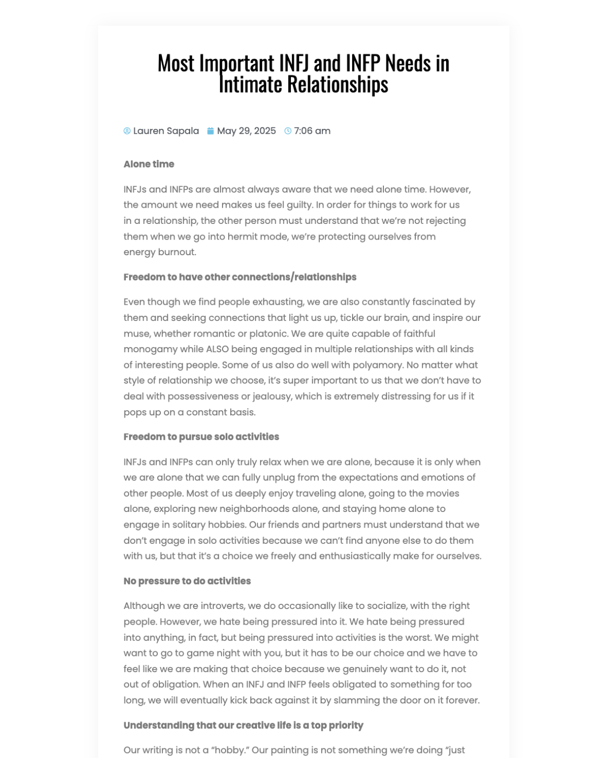 Most Important INFJ and INFP Needs in Intimate Relationships