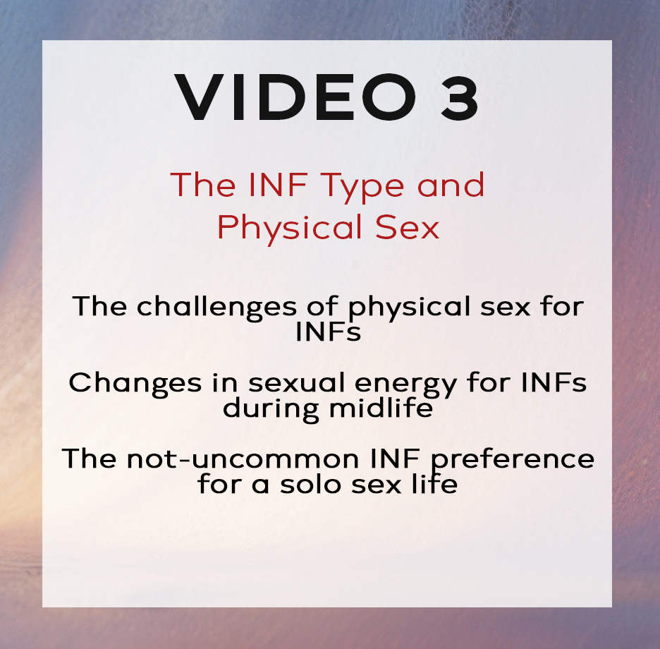 The course includes 8 videos, each of which helps INFJs and INFPs discover the hidden energy patterns in our relationships, how to let go of the patterns that are no longer serving us, and how to move forward into a new, improved experience in our romantic and sexual relationships.
